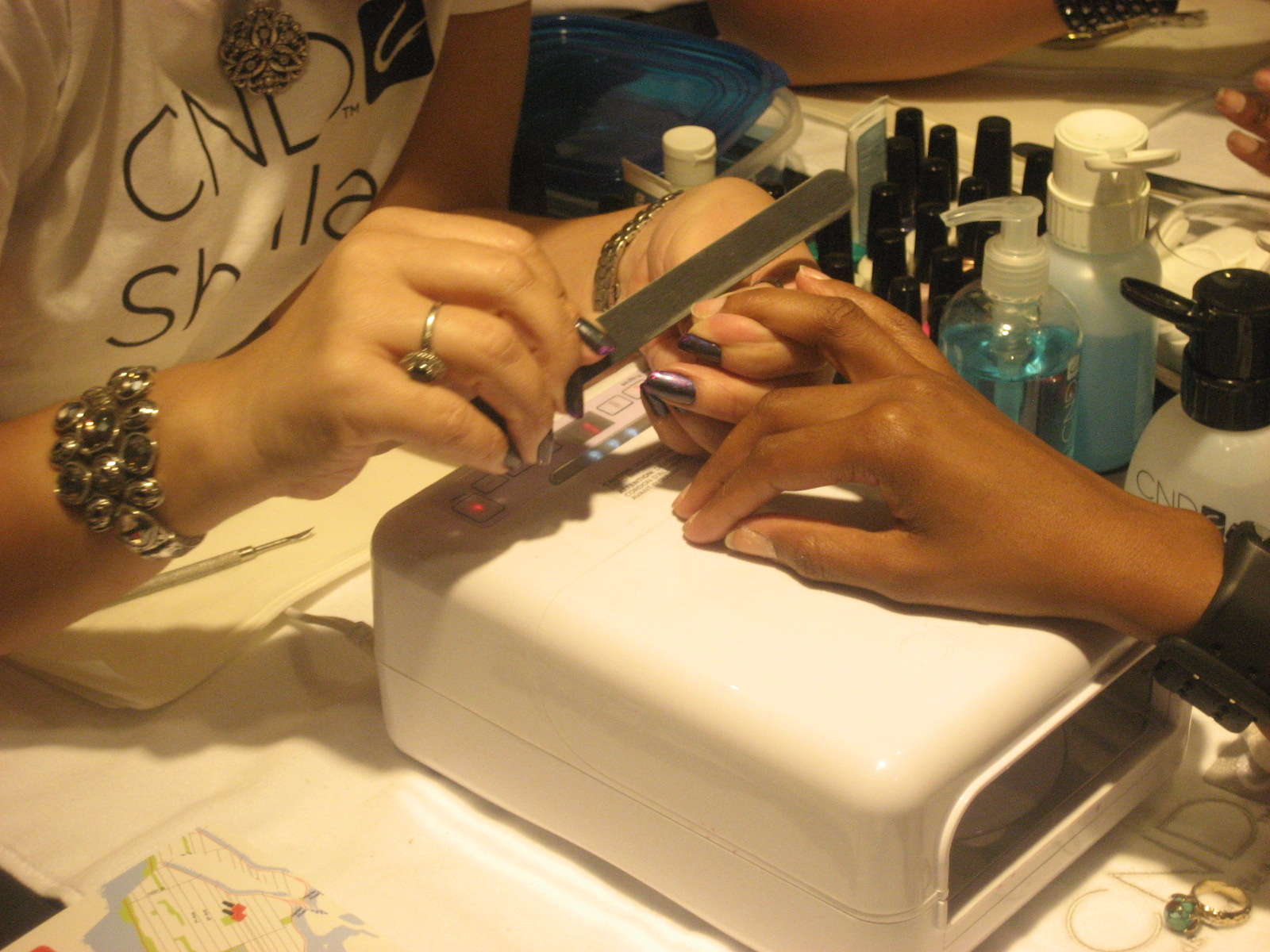 Eternally searching for long-wearing nail polish, Shellac claims to last a full 14 days before another manicure is necessary. CND is the nail salon offering the manicures, and with a staff of three on board at Cocktails & Couture, the list filled up within the first hour, leaving some guests, including yours truly, sans chip-free nails.