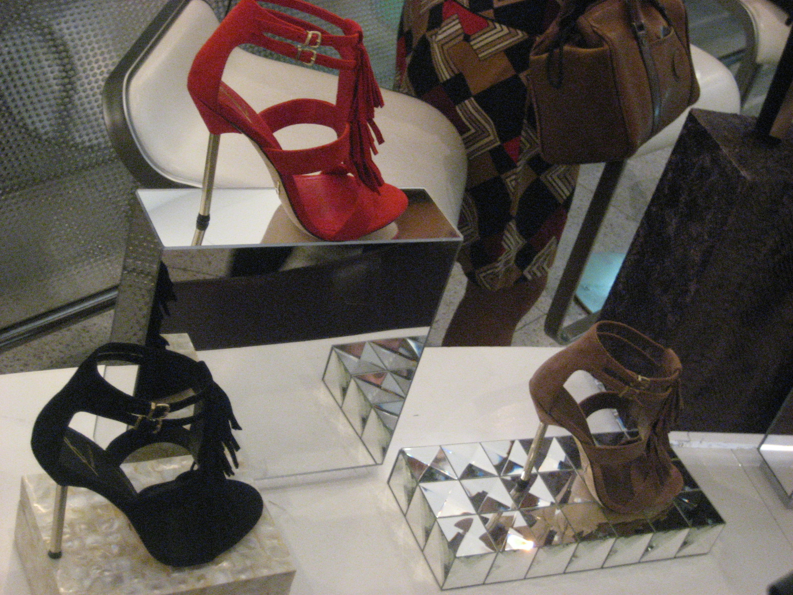 B Brian Atwood shoes range between $275 – $995, but I noticed some shoes were made in Italy or had the stamp “Vero Cuio” (“Genuine Leather”), while other boots were simply “Made in China”. I don’t agree that the prices are justified but B Brian Atwood hits the contemporary market quite nicely – older women looking for something fresher as well as scavengers looking to pick at something below $200 when they go on sale. Either way, B Brian Atwood focuses on style rather than brand. Although Brian Atwood has struck a cord with those in-the-know, he has yet to make it mainstream as aforementioned Manolo, Cavalli, or Gucci.